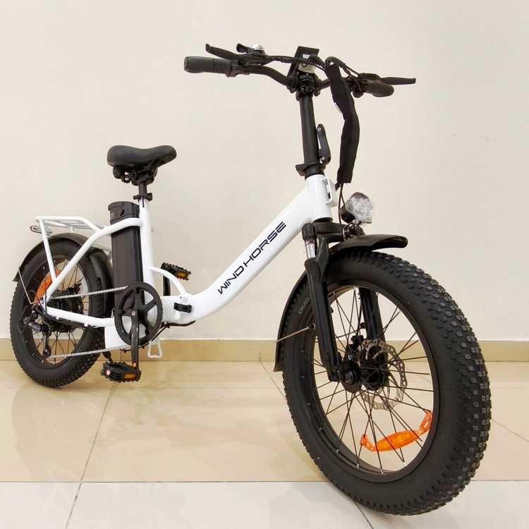 دوچرخه برقی تاشو آفرود تایر پهن WIND HORSE ( استاندارد انگلیس ) مدل W4B رنگ سفید